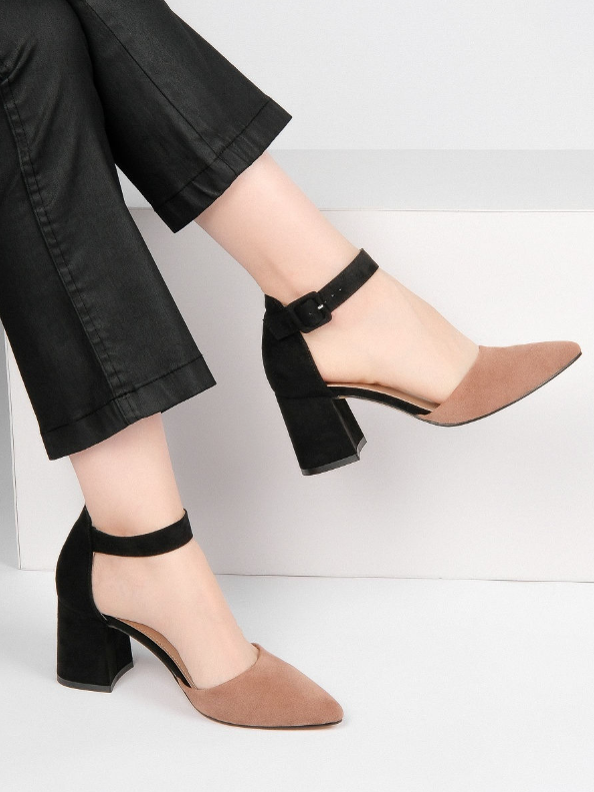 Лаконичная классическая форма туфель идеально дополнена устойчивым каблуком и ремешком.