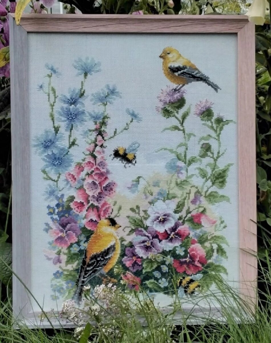 Друзья мои, всем привет! Помните, мы с вами спасали вышивку рукодельницы Екатерины? Не отстиралась разметка маркером на канве. Так вот, вышивка благополучно отстиралась, только в одном месте пришлось вышить дополнительную веточку цикория, в том месте, где полоски н отстирались - удачный выход из сложившейся ситуации... Для отстирывания использовалось хозяйственное мыло и в некоторых местах применялся шампунь-гель для стирки ковров. Это для информации, если, не дай Бог, кому пригодится. Екатерина благодарит всех, кто принимал участие в спасении ее работы) Вы посмотрите, какое оригинальное оформление! А какая фотосессия! В зелени, в цветах эта работа смотрится просто ШИКАРНО! Спасибо, Екатерина, что поделились с нами такой красотой!