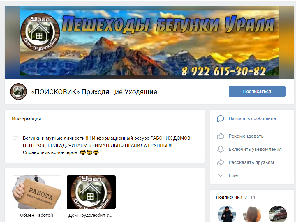 «Бегунки и мутные личности. Информационный ресурс рабочих домов, центров, бригад. Справочник волонтеров», - говорится в описании группы. В ней размещаются фото и личные данные о бывших и нынешних «клиентах» екатеринбургского Дома трудолюбия. Эта благотворительная организация заботится о людях, оказавшихся в трудной жизненной ситуации. В частности, предоставляет кров и помогает найти работу. Но порядки в таких «приютах» - трезвость и ежедневный труд – некоторым кажутся слишком строгими, и они возвращаются к «свободной» жизни.