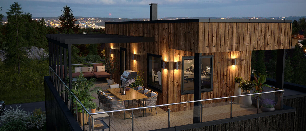 Потрясающий проект трехэтажного дома с террасой. На первом этаже спроектированы гараж, спортивная площадка, ванная комната, открытая кухня. Здесь располагается выход на крытую террасу со спортивной площадкой. Второй этаж состоит из трех спален, ванной комнаты, прачечной и двух просторных кабинетов. Третий этаж представляет собой светлую и просторную гостиную, выход из которой ведет прямо на террасу на крыше, площадью более 45 квадратных метров. Общая площадь: 207 м2