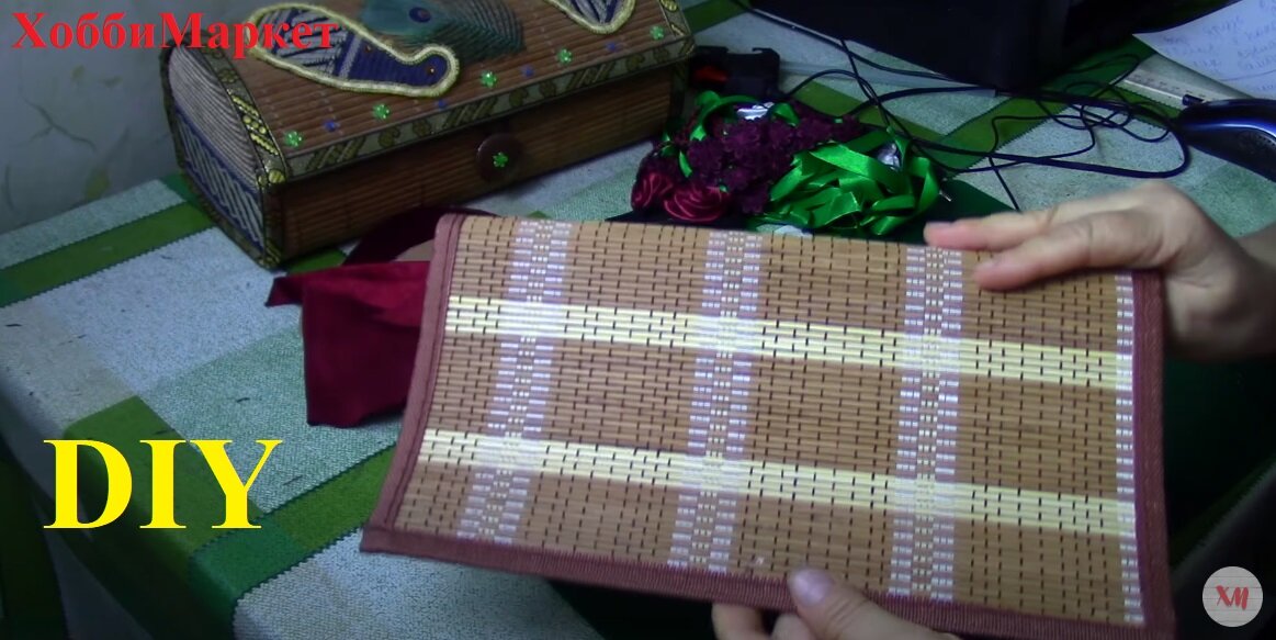 Друзья, давно делаю шкатулки из бамбуковых салфеток. А сделала я их не мало. Работу по созданию шкатулки я очень давно показывала в Стране мастеров. А немного позже даже сняла видео МК. В конце работы я вам покажу те шкатулки, которые успела сфотографировать на память. Салфетки бамбуковые могут быть любого размера, квадратные или прямоугольные, желательно, чтобы углы не были закругленными. Чтобы украсить внутреннюю часть шкатулки, вырезаю из ткани кусок по размеру салфетки (даже чуть меньше, по окантовку) и приклеиваю горячим пистолетом. Если ткань сыпучая, можно предварительно пройтись по краю ткани огнем. Теперь определяюсь какой формы будет шкатулка. Шкатулку можно сделать квадратную , сундучком или любой своей неповторимой формы. Методом подгона (т.к. размеры салфеток разные) рисую шаблон боковины. И вырезаю его из картона (можно брать 2-3 слоя). Для этого подойдет гофрированный или пивной картон. Можно использовать обложку от ненужной книги, тогда боковина будет еще более жестк