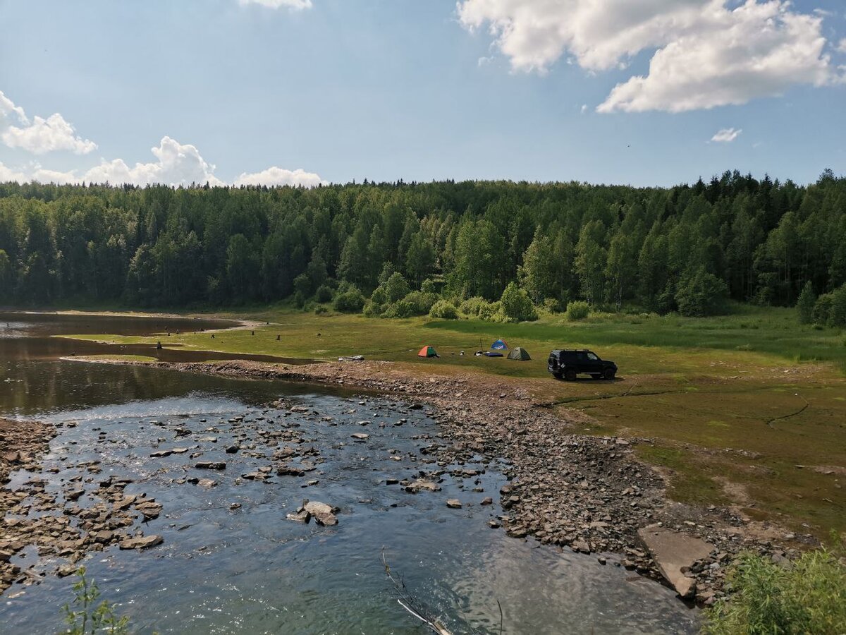 Изначально мы собирались ехать на широковскую ГЭС, о ней было прочитано на многих источниках. Красивые фото, свободные от людей берега... На самом деле ГЭС закрыта, людей полно. Но коллега подсказал что рядом есть река рассольная, и она впадает в водоем у ГЭС. Миновав пару колоний мы выехали к реке. Там было народу не меньше, но воспользовавшись преимуществом внедорожных качеств УАЗа, мы оказались на чудесной поляне совершенно одни. К слову, места действительно живописные, в реке много рыбы, в лесу много ягод и грибов.