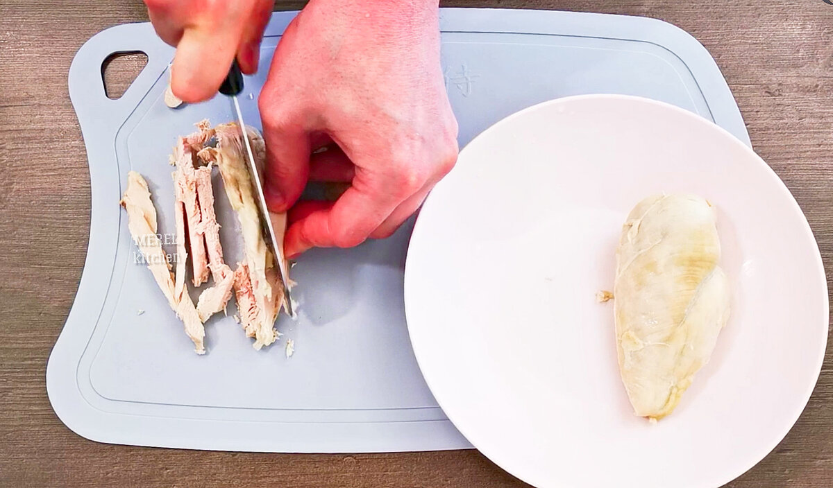 - У нас этот салат на каждый праздник готовят, без него не обходится ни одно застолье! - сказал мне друг, накладывая мне вторую порцию этого безумно вкусного салата. И правда, я бы тоже с удовольствием ел такой салат на каждый праздник и не только, ведь он очень вкусный, ароматный и готовится очень просто. А в летний сезон, когда овощи не дорогие, такой салат просто находка! Прям рекомендую, очень вкусно! Салат называется «Ацецили», его умеет готовить каждая грузинская хозяйка, а название переводится как «рваный», потому что все ингредиенты для этого салата обычно рвут руками. Я вообще обожаю грузинскую кухню и этот салат теперь один из моих любимых! Для его приготовления нам филе курицы 250-300 граммов. Филе нужно отварить до готовности и нарезать небольшими полосками, или разорвать руками на волокна, обычно так и делают, когда готовят салат «Ацецили». Дальше нужен будет один сладкий перец любого цвета, у меня был красный. Перец разрезаем на четыре части и убираем все семечки. Клад