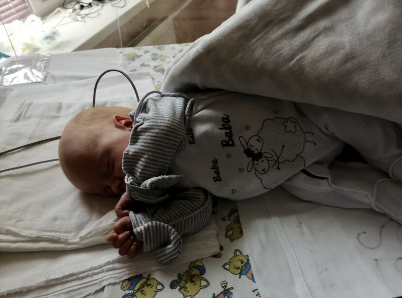 Он был такой маленький, примерно 2,5 кг, но почти в три раза больше чем при рождении. Такой беззащитный, такой сладкий и такой нереальный. Он был совсем не таким, как я его представляла. Было страшно его потрогать, вдруг я нарушу что-то незримое. Я спросила у медсестры – можно его взять на ручки? Она сказала – конечно! Я подняла его очень осторожно. Отойти от его кроватки нельзя было, ведь к нему был подключен датчик измерения кислорода, а из носа торчал зонд. Мои прикосновения ему не особо понравились, и я положила его обратно. Но отойти от кроватки не могла, в первый день нашего совместного пребывания я простояла рядом с ним все время, пытаясь осознать, что я мама, а рядом мой ребенок.