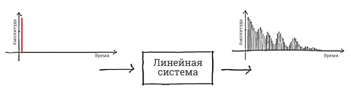 Каждая линейная система характеризуется своей импульсной характеристикой (т. е. реакцией системы на импульс во временной области, как показано на Рис. 1).