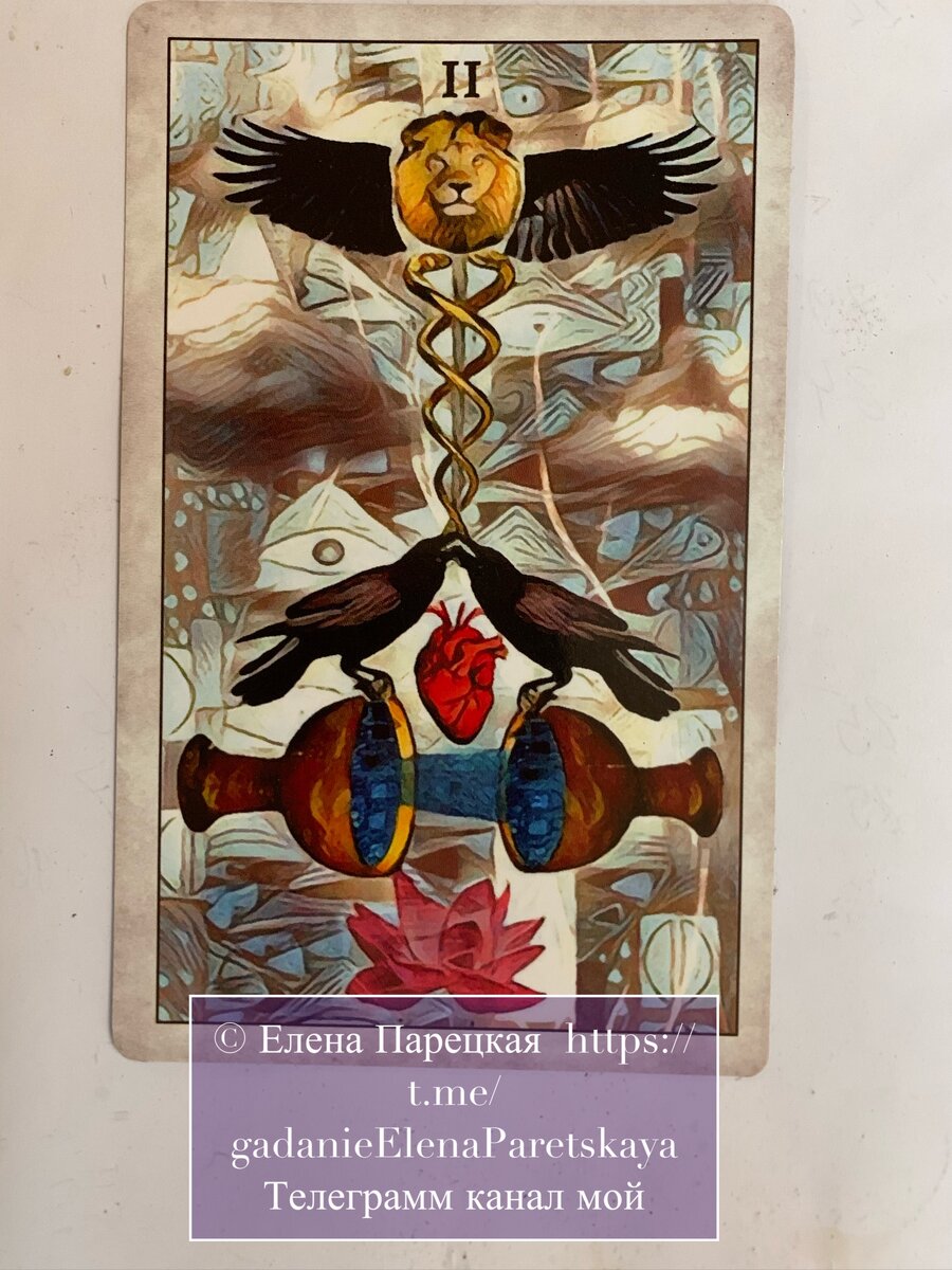 Карта Дня на сегодня 2 августа 22 год, вторник, по Картам Таро Ворон, 2 КУБКОВ , Стихия: Вода. ©Елена Парецкая