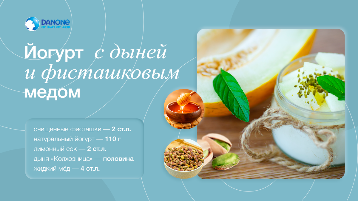 Будьте осторожнее! Десерт влюбляет в себя с первого укуса. И мы вовсе не преувеличиваем. Приготовление не займёт много времени! 🍈 Очистите дыню от семян и кожуры. 🍈 Затем нарежьте ее крупными кубиками. 🍈 Выложите кубики дыни на блюдо. 🍈 Сверху полейте ее йогуртом, мёдом и посыпьте фисташками. Идеальный летний десерт готов!