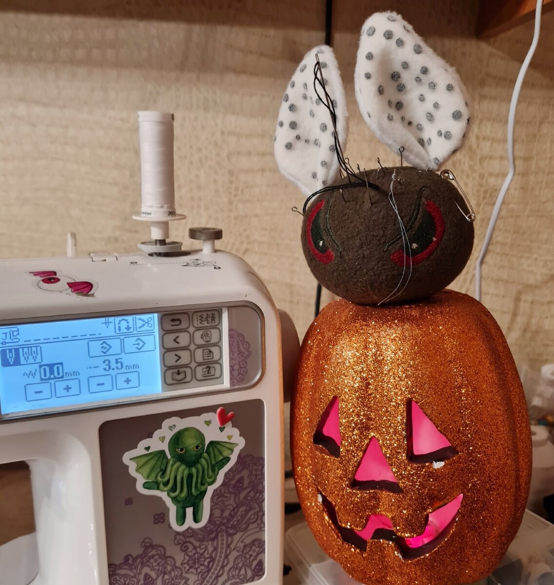 Как говаривала Харли Квин в одном фильме. Приветствую в уголке моей мастерской, сегодня будем как мыши, дуться на крупу, точнее на рабочие моменты:) и учиться летать, тоже как мыши. Но это не точно. 😄 Меня часто спрашивали, почему ты не показываешь процессы, фото с мастерской? Ну, если честно, моя мастерская очень отличается от гламурно обустроенных студий... 😅 Антуража нет, точнее местами он носит Хэллоуинский характер и постоянно меняется, в зависимости от заказа или швейного проекта. Да и промежуточные моменты бывают забавны, а не вдохновенны. На днях я показала подруге один сложный проект на стадии прошивки и сборки. Она спросила, что случилось с пчелой и за что ее Вселенная так... расплющила?))) А это было тело в полосатом скафандре в разрезе, на минуточку. 😁 Вчера я попробовала снимать в работе просто на бегу, а не как я это делала для свои МК... Вот, например, вчера к летучей мышке у нас был светильник Джека на минималках, сверху удобно расположилась моя злобная игольница, а