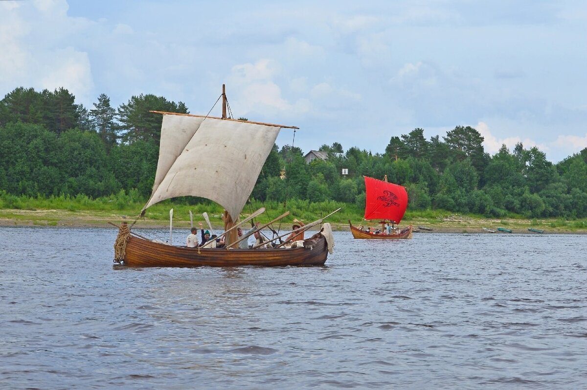 Следующий день мы тоже шли на буксире, настроение у всех было ленностное, скучное, даже у собаки случился приступ морской болезни и его хозяйке Софе было тоже нехорошо. Зашли в Емецк, это в 100 км. примерно от Архангельска. Пополнили запасы провизии и двинулись дальше. Дождь периодически накрапывал с неласковым ветерком, поэтому, перекусив, все спрятались на дно ладьи, капитан дал книгу скандинавских саг и под моё мерное чтение все заснули. Шли допоздна, причалили на каменистый берег, ходить по нему было невозможно, а надо как-то добраться до заветных кустиков в туалет! Сделано. Поужинали с последующим планом выйти ночью. Спали все в ладье.