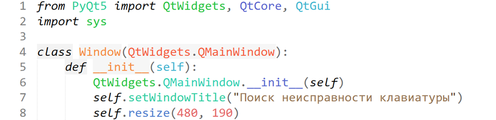 Создаем программу «Поиск неисправности клавиатуры» на языке программирования Python и его библиотеки PyQt5. 1 Часть