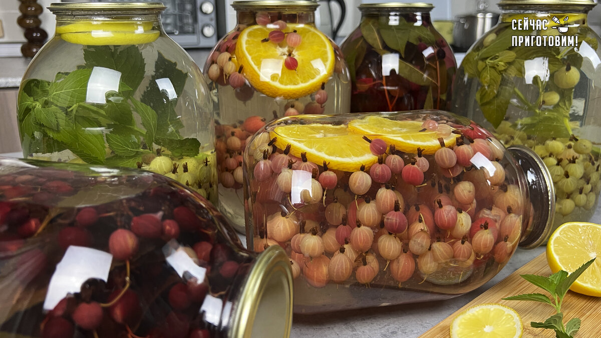 Вы даже не представляете насколько компоты вкусные и ароматные зимой! Начну со своего любимого рецепта. Беру крыжовник зеленых сортов, предварительно мою, хвостики от ягод я не отрываю и раскладываю по чистым банкам. Заполняю ягодами примерно на одну треть банки. Банки и крышки я предварительно стерилизую. Лимон мою, обдаю его кипятком и нарезаю его кружочками. Если есть косточки, то обязательно вынимаю. Добавляю по 2 кружочка лимона в каждую банку. Высыпаю 300 грамм сахара, количества сахара лучше конечно регулируйте по своему вкусу, но я обычно меньше чем 250 грамм на 3-х литровую банку не кладу. И добавляю по одной две веточке мяты, зависит от размера, у меня перечная мята. Заливаю банки крутым кипятком до самого верха. Накрываю крышками и закатываю банки. Обязательно банку нужно покатать по столу, чтобы сахар растворился. Ставлю банки на крышки и накрываю теплым одеялом. Выпить зимой такую чашечку Мохито с крыжовником и мятой одно удовольствие. Тем более что крыжовник - ягода не т