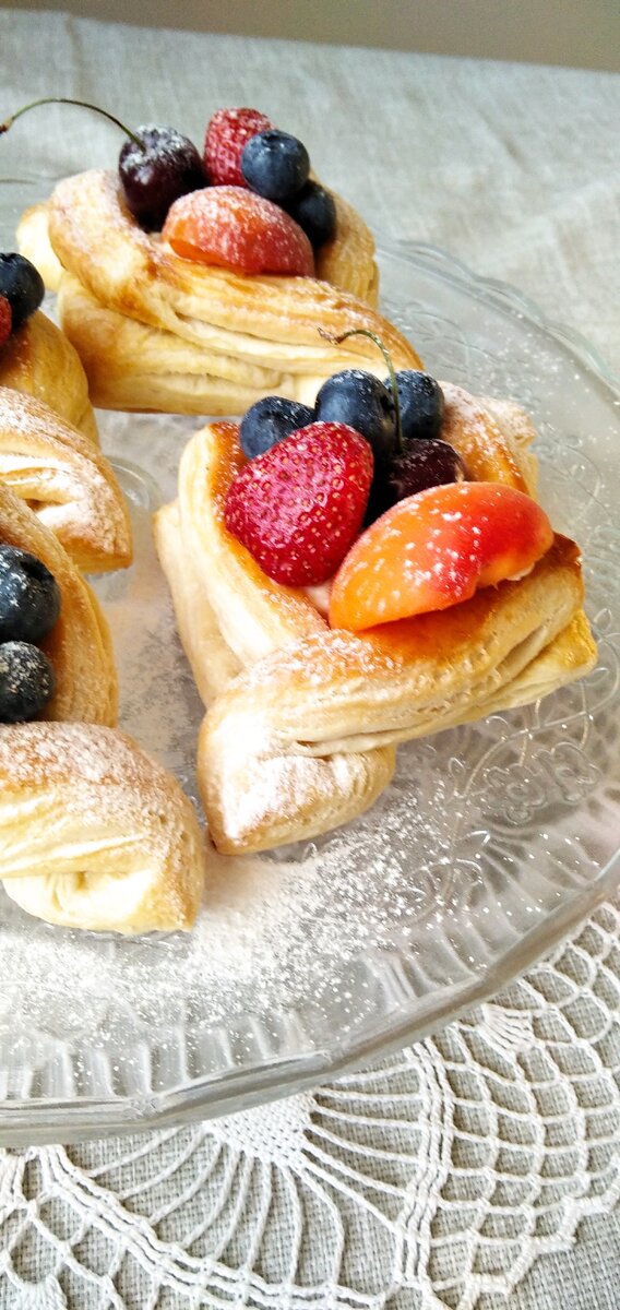 Вариантов выпечки из слоёного теста много: и сладкая и солёная. Это всегда быстро, эффектно и вкусно. "Розочки с колбасой". Слоёное дрожжевое тесто. Колбаса ( вкуснее с жирком) Яйцо для смазывания( для красивого цвета) Режем тесто на полоски. Кружочек колбасы пополам. Выкладываем колбасу на тесто и заворачиваем улиткой. Выпекать до готовности. Сладкие слоечки с ягодами. Слоёное дрожжевое тесто. Творожный сыр с сахарной пудрой для начинки. Ягоды по сезону. Тесто разрезаем на квадраты. Смазываем яйцом и ставим в духовку минут на 15. Готовые квадратики смазываем творожным кремом и украшаем ягодами или фруктами. Можно присыпать сахарной пудрой. Пицца на слоеном тесте. Слоёное дрожжевое тесто. Соус: майонез, кетчуп, горчица( по 1 ст л). Наполнение любое: колбаса, сыр, помидоры, зелень. Из теста вырезаем прямоугольник. Ставим в духовку минут на 15. Поджаренную заготовку вытаскиваем. Смазываем соусом и выкладываем начинку. Запекаем ещё примерно 10-15 минут. Чтобы сыр растопил
