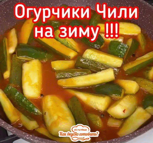 Огурцы чили на зиму! #Как_вкусно_готовить #гиф_рецепты #закуски 📌 Ингредиенты: ▶Огурцы -1,5 кг ▶Вода горячая -100 мл ▶Уксус 9%-50 мл ▶Растительное масло -80 мл ▶Сахар -70 гр ▶Соль-22 гр ▶Перец горошек по вкусу ▶Чеснок 5-6 зуб ▶Кетчуп Чили 250 гр у меня Махеев