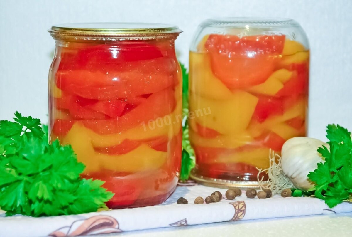 Или Закатки впрок На 5 кг перца (а чего мелочиться:)) - 0,5 литра воды, 0,5 литра растительного масла, 0.5 литра уксуса столового пищевого 9%, 100 г соли крупной не йодированной, 100 г сахара, 10 шт душистого перца, 10 шт гвоздики сушёной, пучок укропа и пучок петрушки. Перцы для этого рецепта лучше брать мясистые - жёлтые, оранжевые, красные. Зелёные могут сильно горчить. Итак: 1. Перец моем, отбраковываем перцы с дефектами - потемнения кожуры, гниль, следы вредителей. 2. Зелень моем и оставляем для стёка воды. 3. Готовим банки и крышки, см. рецепт pro огурцы и помидоры. Для этого рецепта подойдут банки вместимостью 0.5-1.0 литр. 4. Отобранные перцы чистим, режем на дольки (вдоль), примерно 1 перчину разрезаем на 4 дольки. 5. Берём большую кастрюлю и делаем в ней маринад: добавляем воду, масло, уксус, соль, сахар, приправы. 6. В кастрюлю со смесью добавляем нарезанные на дольки перцы, аккуратно размешиваем, доводим до кипения и кипятим 10 минут на небольшом огне. Не забываем снимат