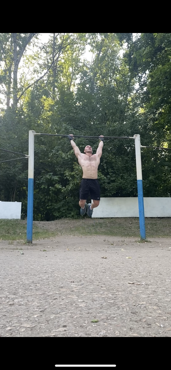 Тренировка дня 💪🐻. Бег. Подтягивания. Берпи. Двойные скакалки. Ноги к турнику. Стойка на руках.
