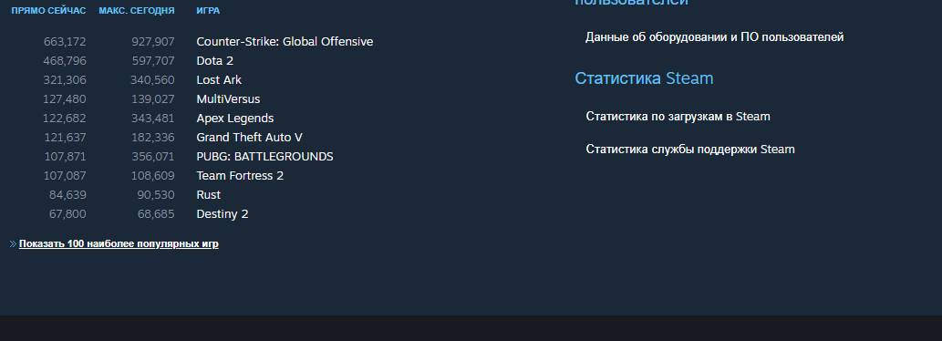 Статистика всех игр взята с официально страницы Steam . Дата материала (02.08.2022). 1 место онлайн игры (927,907)