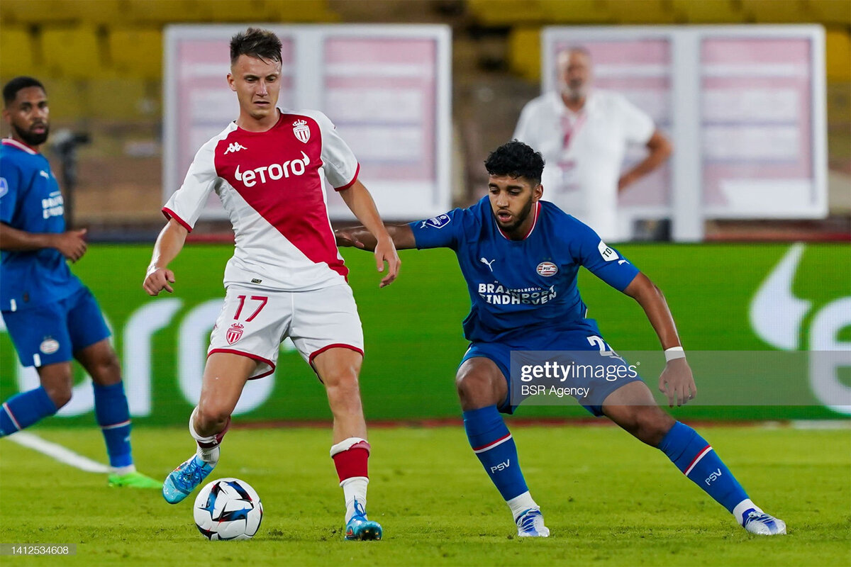 Матч начался спокойно, неторопливо. Монегаски попытались взять под свой контроль мяч и территорию, а голландцы не слишком этому сопротивлялись, но и подпускать к воротам противника не хотели – встречали прессингом. А более заряженные хозяева уже на третьей минуте отметились желтой карточкой – Матазо перестарался в отборе. Из этого стандарта гости ничего не извлекли, а вот "Монако" получше использовал свой штрафной, заработанный Головиным. Сам же Александр разыграл его с партнером и подал к вратарской, оттуда последовала скидка в сторону Марипана, который не очень акцентированно, но все же пробил, попав в голкипера. ПСВ отвечал малыми силами и не добирался толком до чужих владений. Хозяева хорошо накрывали противника и бросались вперед при первой же возможности. Стоит при этом отметить активность Головина, через которого часто проходил мяч, который здорово участвовал в поддержке атак на разных участках поля и старался брать игру на себя. Остальные выделялись лишь эпизодически. Это создавало эффект рваной игры, которая не отличалась остротой и динамикой – у ворот реальных моментов не возникало. Попытки разнообразить игру с одной или другой стороны больше напоминали хаотичные решения и приемы – те же длинные переводы вперед оказывались не подготовленными и легко перехватывались защитниками. В общем, все выглядело сыро. Особенно у ПСВ, который впереди вообще не был заметен. "Монако" хотя бы пытался что-то предпринять. В середине тайма соперники обменялись ударами со средней дистанции. Но Минамино не хватило точности, а удар Тиля был блокирован, добивание Вермана вышло неточным. Этот обмен атаками символизировал собой некий перелом в игре. ПСВ словно проснулся от спячки и стал агрессивнее накатывать на чужую штрафную, а монегаски уже выглядели прижатыми и перестали тревожить защиту голландцев. Но даже такие изменения не приводили к обострению игры – моментов все так же не хватало ни у каких ворот. Стандартами на чужой территории "Монако" оттеснил игру. Но штрафной и угловой не получились опасными. Хотя в сумбуре после корнера мяч задел руку игрока ПСВ, из-за чего монегаски бросились требовать пенальти. Но судья после просмотра повтора решил, что нет повода для одиннадцатиметрового. Когда казалось, что тайм так и докатится до нулевой ничьей, ПСВ открыл счет. Де Йонга нашли проникающим пасом, Люк сориентировался и вовремя откатил мяч набегавшему Верману, который с ходу пробил под штангу. 0:1. Прозевали быструю легкую комбинацию защитники "Монако". Но хозяева тут же могли отыграться. Головин с левого края мягко забросил мяч к противоположной штанге, куда примчался Минамино, но замкнуть передачу мимо голкипера не смог. Затем по центру пытались прорваться Фолланд и Бен Йеддер. Их остановил перехват последнего защитника. Перед перерывом "Монако" взбодрился, но уйти при равном счете не получилось.