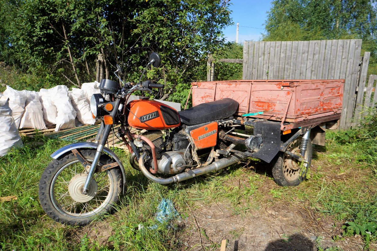 Приветствую, друзья! В интернете выскочило объявление о продаже грузопассажирского мотоцикла ИЖ 6.920ГР-030-10 - по секрету, это редчайший экземпляр, который представляет огромную ценность для коллекционеров советско-российской мототехники. Надеюсь, продавец не в курсе этой информации. Я же бросаю все свои дела и еду смотреть мотоцикл, где буду обязательно торговаться. Если сойдемся в цене, сразу же забираю себе данный экземпляр. На месте встречи меня ждал предприимчивый молодой человек. И да! Он прекрасно понимал каким сокровищем владеет. Поэтому сильно сбить цену не получится. Давайте смотреть агрегат. На вид мотоцикл подуставший, похоже хорошо ему досталось. На вопрос можно ли запустить двигатель, получил ответ. -"Нет, АКБ разряжен". После пары неудачных толчков кикстартером понял, что дело не в АКБ. Правильно мне под видеороликом в комментариях написали, что воздушник не подходит для грузового мотоцикла, ему нужен двигатель с водяным охлаждением. Двигатель с воздушным охлаждением