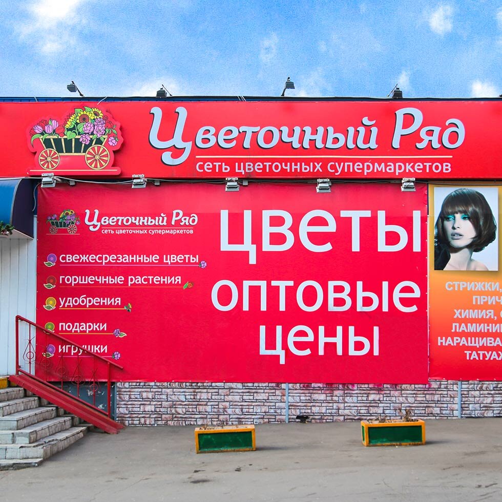 Для оформления магазинов сети «Цветочный ряд» мы использовали преимущества красного цвета, который традиционно считается символом любви и страсти. Красный цвет в сочетании с контрастным белым — «изюминка» салонов. В дизайне вывески обязательно подчеркивается 24-часовой график работы магазинов. Логотип сети — тележка в стиле «прованс», наполненная разноцветными полевыми и садовыми цветочками, делает бренд узнаваемым издалека.