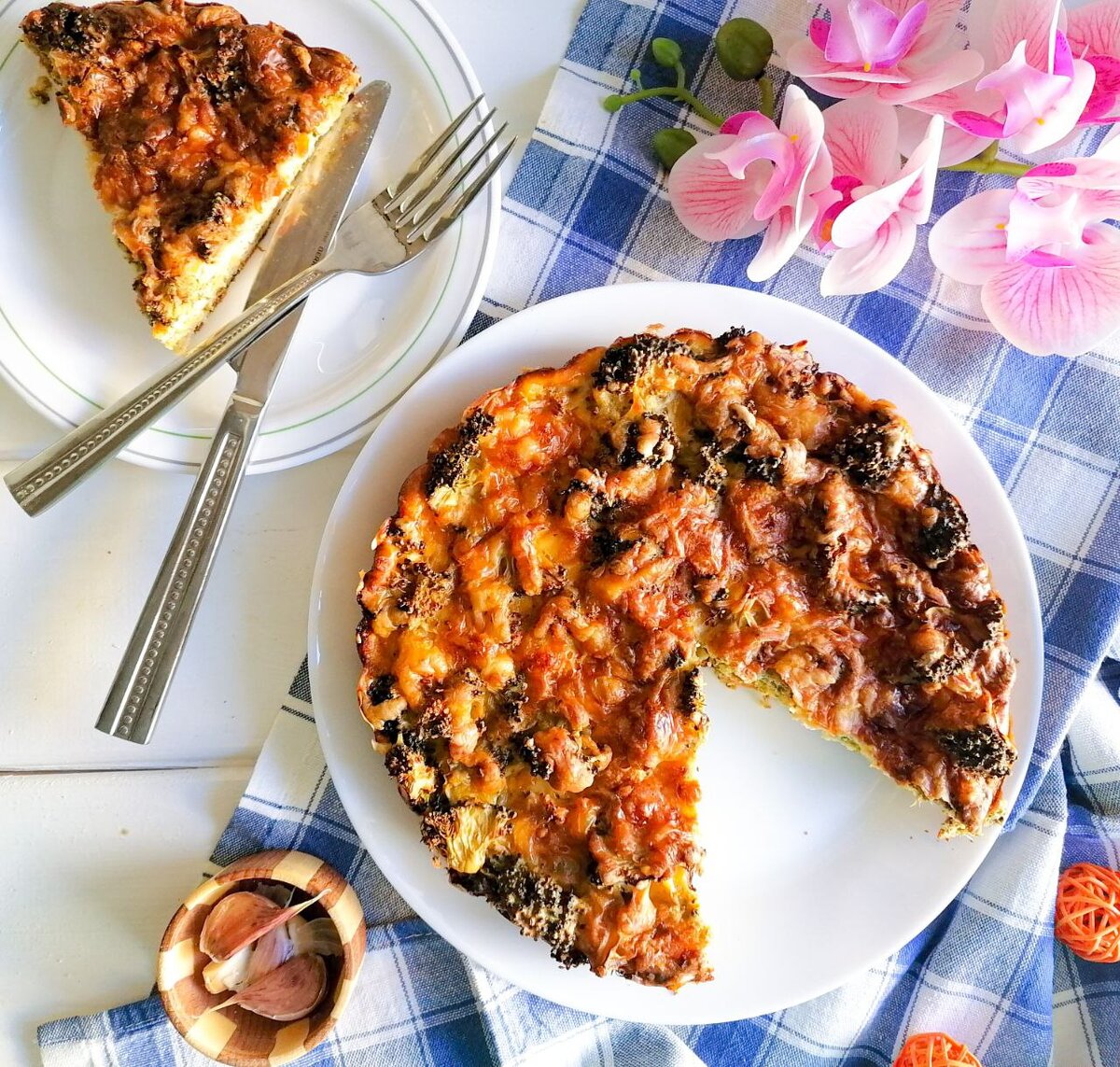 Брокколи - овощ на любителя. В нашей семье люблю его только я. Поэтому без зазрения совести этот пирог съела сама. При желании можно добавить дополнительные ингредиенты на свой вкус. 🥦 Если брокколи замороженная, то ее необходимо разморозить и залить горячей водой на несколько минут, после воду слить. 🥦 Если брокколи свежая, то достаточно ее хорошо промыть и разобрать на соцветия. 3. В отдельной посуде смешать яйца, йогурт и растительное масло. Следом просеять муку с разрыхлителем, добавить соль и перец. Тщательно перемешать до однородности. 4. Следом в тесто добавить пропущенный через прес чеснок и половину тертого сыра. По консистенции тесто должно получиться, как на оладьи. 5. Брокколи выложить в форму для запекания. Сверху залить тестом и посыпать второй половиной сыра. 6. Запекать 45 минут при 180 градусах. Приятного аппетита! Ингредиенты 500 г брокколи 4 яйца 5 ст. л. муки 100 г твердого сыра 250 г натурального йогурта 1 зубчик чеснока 1 ч. л. разрыхлителя 1 ст. л. растительно