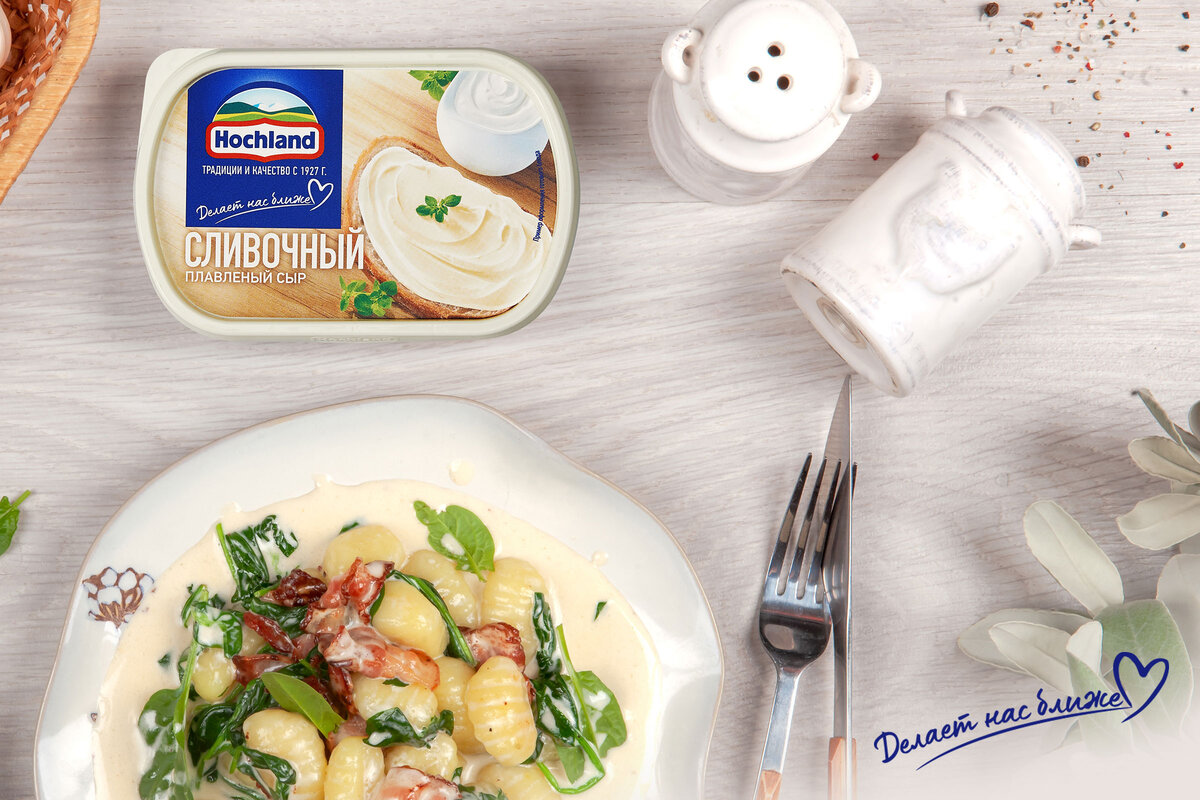 Родина ньокки — Италия. По сути, это ленивые вареники из картофеля или теста. Сделать ньокки очень просто, но для экономии времени можно купить готовые в супермаркете. Сегодня мы готовим картофельные ньокки с беконом и шпинатом в сырно-сливочном соусе с Hochland. Вам понадобится: Этапы приготовления: Хотите вкусно и разнообразно готовить? Заходите на сайт hochland.ru. Здесь собраны десятки рецептов на все случаи жизни. #ньокки #ньокки картофельные #картофельные ньокки