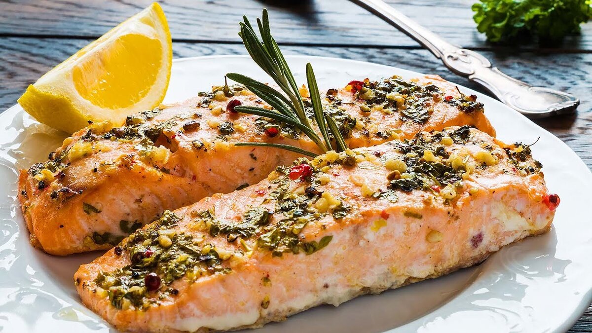 Красная рыба, запеченная в духовке на луковой подушке