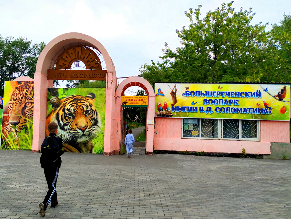 Это единственное место в Омской области, где можно посмотреть на диких животных, привезенных со всего мира. Зоопарк является местом экологического и эстетического воспитания всех поколений, уголком, где человек может освободиться от стрессов, техногенных перегрузок большого города, отдохнуть душой и слиться с природой. Однажды посетив зоопарк, вы полюбите его и будете его частыми гостями! Государственный Большереченский зоопарк имени В.Д. Соломатина - единственный в России сельский зоопарк. Площадь его 9 гектаров и располагается он в живописной пойме речки Большая, недалеко от впадения её в Иртыш. Создан был он и построен при активном участии жителей поселка и района. Ныне в зоопарке более 200 видов животных, это около двух тысяч экземпляров. Из них более 50 видов занесены в Красную книгу РФ и в Красную книгу МСОП. Зоологическая коллекция представлена из млекопитающих, птиц, рептилий, амфибий и рыб. Хищные: дальневосточный леопард, персидский леопард, черный леопард, белая медведица, т