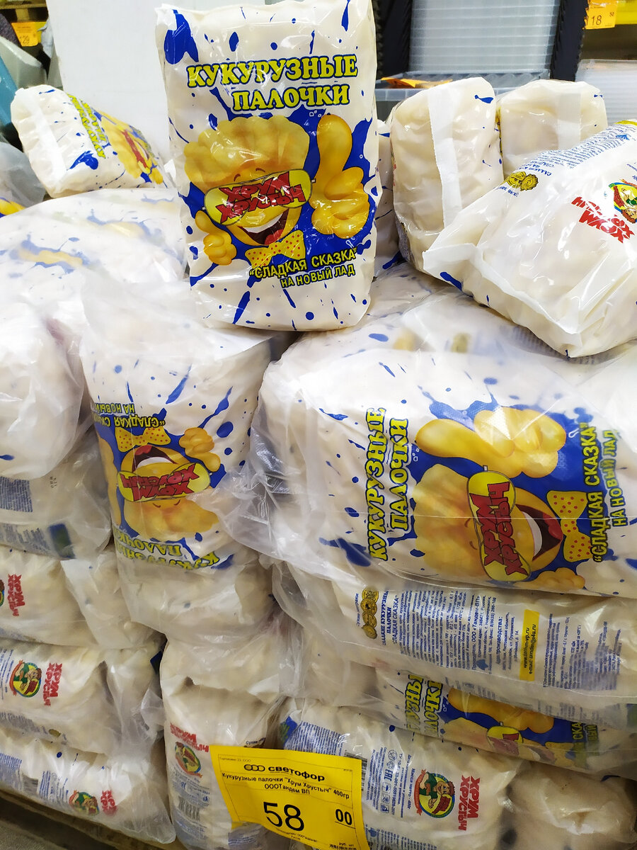 Три новые сети открыли в этом году у нас свои магазины и везде они написали, что все товары по низким ценам. В принципе названия у всех на слуху, это "Доброцен", "Победа" и "Рубль". Но на самом деле, всё оказалось совсем не так и со "Светофором" их просто нельзя сравнивать, у этого магазина цены ещё ниже до 30%. И так, мой небольшой обзор из "Светофора" в городе Абинск. Кукурузные палочки "Сладкая сказка" детям очень нравятся, в упаковке 400 грамм. Цена 58 рублей. Чёрный традиционный чай "Принцесса Канди", в упаковке 100 пакетиков по 1,8 грамма. Цена 98 рублей. В стеклянной банке растворимый кофе SORA и отзывы пока разносторонние, массой 250 грамм. Цена 232 рубля. Пшеничная мука высшего сорта ГОСТ, массой 2 кг. Цена 62 рубля. Пшеничная мука высшего сорта в мешках по 50 кг. Цена 1404 рубля. В основном покупают жители дач и деревень. Тепличные розовые помидоры от местных поставщиков. Цена 44 рубля за 1 кг. Молотый острый перец чили, в мягкой упаковке массой 100 грамм. Цена 47 рублей. Неп