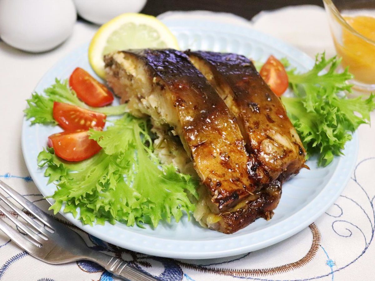 Карп - это очень вкусная рыба, достаточно упитанная и крупная. Запечённый в духовке, карп получается нежным и сочным, с ароматом специй и трав. Такая рыбка с успехом украсит ваш праздничный стол и порадует любителей речной рыбы. Порционные надрезы позволят аккуратно и красиво выложить рыбу на тарелки. Ккал: 127.32, время приготовления: 1 ч.40 мин., порций: 4 #Вторые блюда #Духовка #Авторская #Русская #Блюда из рыбы #Блюдо ПП #На обед #На ужин #Праздничное блюдо #Просто приготовить Ингредиенты Приготовление: 1. Подготовить ингредменты для запекания. Карпа почистить от чешуи и выпотрошить. Хорошо помыть и обсушить. Специи для рыбы могут быть любые, по вашему вкусу. 2. Посолить и поперчить карпа. Обсыпать его ароматными травами. У меня готовые сборные травы для рыбы и сухой базилик. Оставить рыбу на 30-40 минут пропитаться и просолиться. 3. Лук и лимон нарезать кольцами. Зелень помыть и стряхнуть влагу. 4. Большой противень застелить фольгой. На карпе сделать надрезы по порциям,
