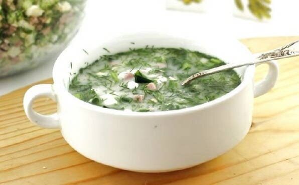 Окрошка классическая с колбасой на воде с уксусом и майонезом
