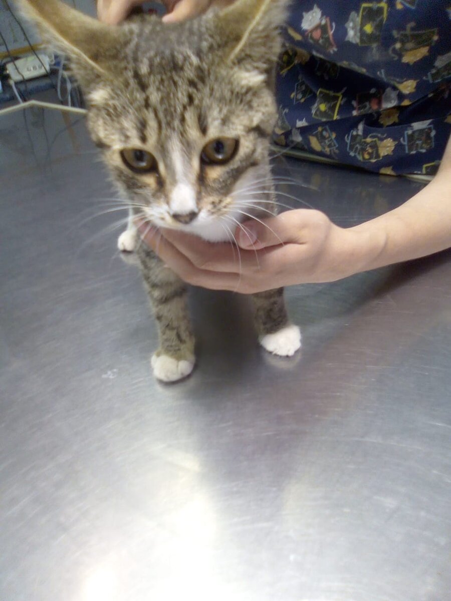 Вчера, пробегая мимо кустов у самой дороги на повороте, наблюдала такую сценку: две девчушки несли по котёнку, одна, которая сзади, бросила, проходя мимо, в этот куст одного, а вторая быстро-быстро перебежала дорогу по переходу на другую сторону со вторым котенком на руках. Я их окликнула"Кошачий патруль!" и видимо, спугнула( Девчушки быстро сткрылись из виду. Немного прогодя, когда шла обратно, позвала "кис-кис" и получила отклик - отчаянный звонкий писк по-котеночьи. Полезла в чащу. Котейка испуганно пытался залезть на дерево от меня, но не удалось, неумеха! Поняла, что голодный, паучи с собой, покормила прямо с руки, остаток положила на пакетик. Раздумывать было некогда: срочно позвонила внучка, плача, позвала меня быстрее домой, я всё оставила как есть и побежала . Внучка была с высокой температурой, нечаянно разбила ртутный градусник, очень перепугалась. В хлопотах прошел день, но мысль о котенке в кустах не оставляла меня. Сегодня пошла кормить бездомышей в тот же район и за