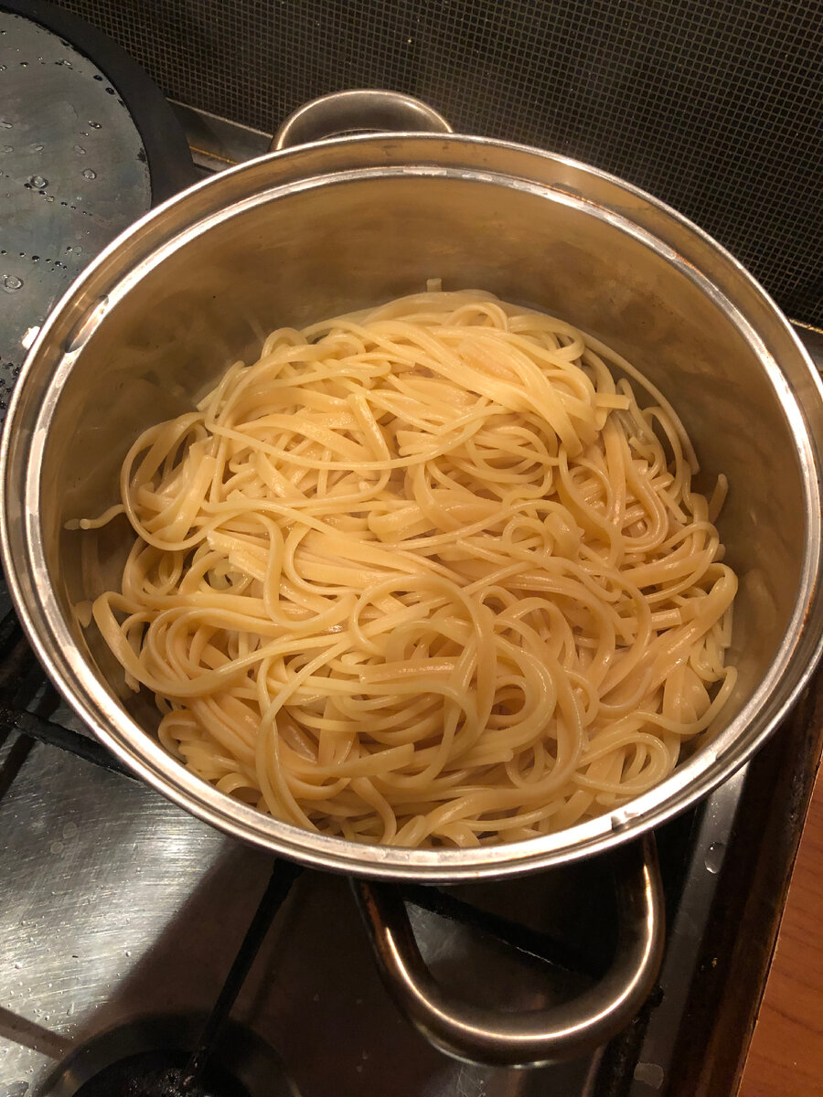 Необязательно ходить в ресторан что бы вкусно поесть, можно все приготовить дома выйдет и вкуснее и дешевле! Сегодня готовим пасту с креветками в сливках, все на самом деле просто как пожарить яичницу. Рецепт: Приготовление. Лапшу закидываем в кипящую, заранее подсоленную воду и готовим по времени которое написано на упаковке (в среднем 9-12 минут) Если креветки не чищеные то закидываем варится на 3-5 минут в подсоленную, кипящую воду, после окончания времени, даём им остыть (в этот момент белок в креветках окончательно сворачивается). Дальше чистим креветки (советую варить их в панцире - вкус становиться более насыщенный). Потом режем лук и чеснок, смазываем сливочным маслом сковородку и закидываем лук с чесноком на обжарку на 3-5 минут. После того как лук обжарили, заливаем сливки, добавляем соль и специи (я добавлял паприку и петрушку). Осталось только закинуть креветки и лапшу, мешаем все до загустения и все готово. ✅ И вот такая красота у нас получается, всем приятного а