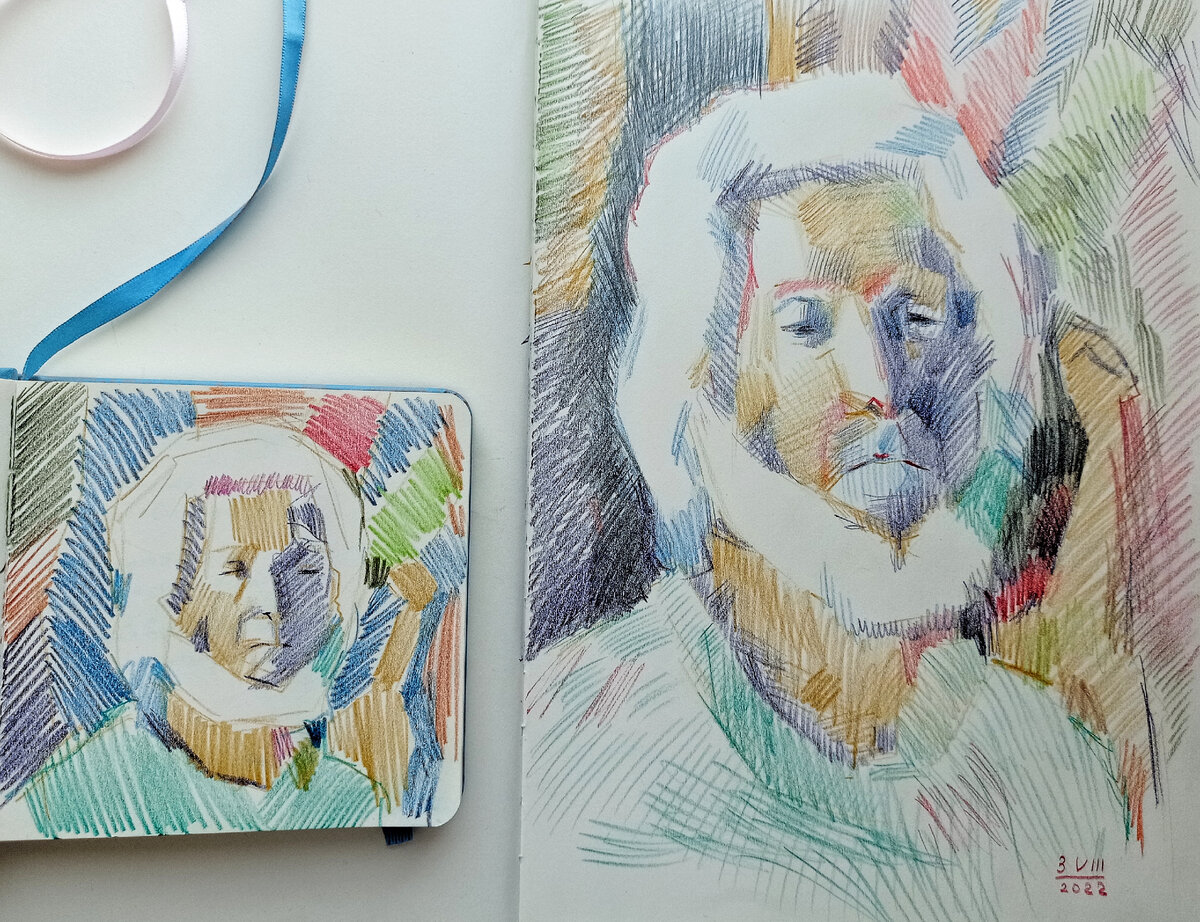 Рисованию учат упражнения. Одно упражнение — одна задача. Так постепенно накачиваются все «рисовальные мышцы», а человек становится мастером. Словом, всё точно так же, как в спорте. Поясню для новых читателей. Я художник и преподаватель, мама шести детей. Специализируюсь на детском портрете и веду курсы по рисованию для взрослых. Сегодня понедельник, и мы все входим в трудовую деятельность. Стало быть, «рисовальным мышцам» срочно нужна работа. А так как на выходных часть сил уходит на активный отдых, для понедельника больше подойдёт разминка. И такое есть в моём педагогическом арсенале! Встречайте: композиционный конспект! Суть проста, никаких шедевров мы планировать не будем. Возьмём работу любимого художника и общо разберём все выразительные средства: — формат, — композиционный центр, — планы и перспектива (если есть), — симметрия (есть или нет), — цвет, — контрасты, — ритм, — декоративность. Можете рисовать карандашами, гуашью, акварелью или создать аппликацию. Я тут немно