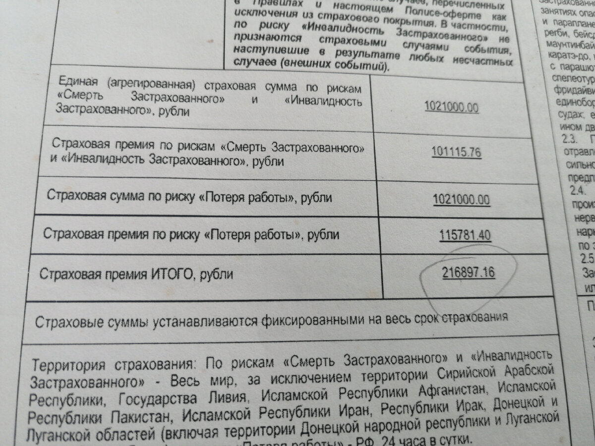 Но, прочитав внимательно условия, выяснилось, что туда много чего не входит. Например, повторный перелом конечности ( для меня это актуально), инсульты, инфаркты, онкология, хронические заболевания, любые происшествия если в крови есть градус. Самое оптимальное для банка, если тебя стукнули по голове негодяи и ты был с этот момент трезв, тогда страховка сработает. Решила все-таки отказаться от этого "добра". Да, % будет выше по кредиту, но я же продаю участок, если вдруг продам, то быстро погашу кредит и это будет выгоднее, чем еще гасить ненужную страховку.
