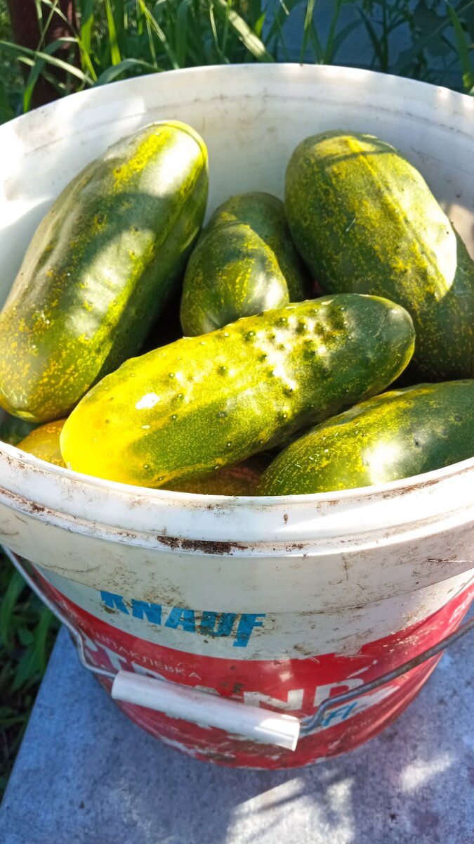 Сегодня в моем зверинце огуречный пир! Отмечают все поступление юной хозяйки в детский сад 🎉!! Вот мы какие молодцы! Всех накормим, всех порадуем! Ну да ладно. Признаюсь вам. Ни какие мы не молодцы🤭.Так себе, а не садоводы. Взгляните сколько переростков нарастили! Честное слово, в последние дни на грядки не заглядывала. Даже на салатик не срывала. И вот вам результат! Чуть-чуть не полное ведро на двенадцать литров огурцов переростков.. Огурчики чуть поменьше молодых кабачков. Вот так вот!! Благо,есть кому есть... Сами без огурцов, конечно то же не остались. Поменьше ,чем для животных, но уже салатиком не отделаюсь. Придется консервировать. На засол горячим способом сил что-то сегодня нет. Всё-таки ходьба на дальние дистанции это не моё. Засолю огурчики по новому. Этот рецепт подсмотрела в деревне Ивашково. Спасибо! Ссылку на видео оставлю ниже, вдруг кому то же пригодиться. А ещё, мои не наглядные животики, те,что с рогами и молоко дают, забрались в сад и яблок натрясли, помощник