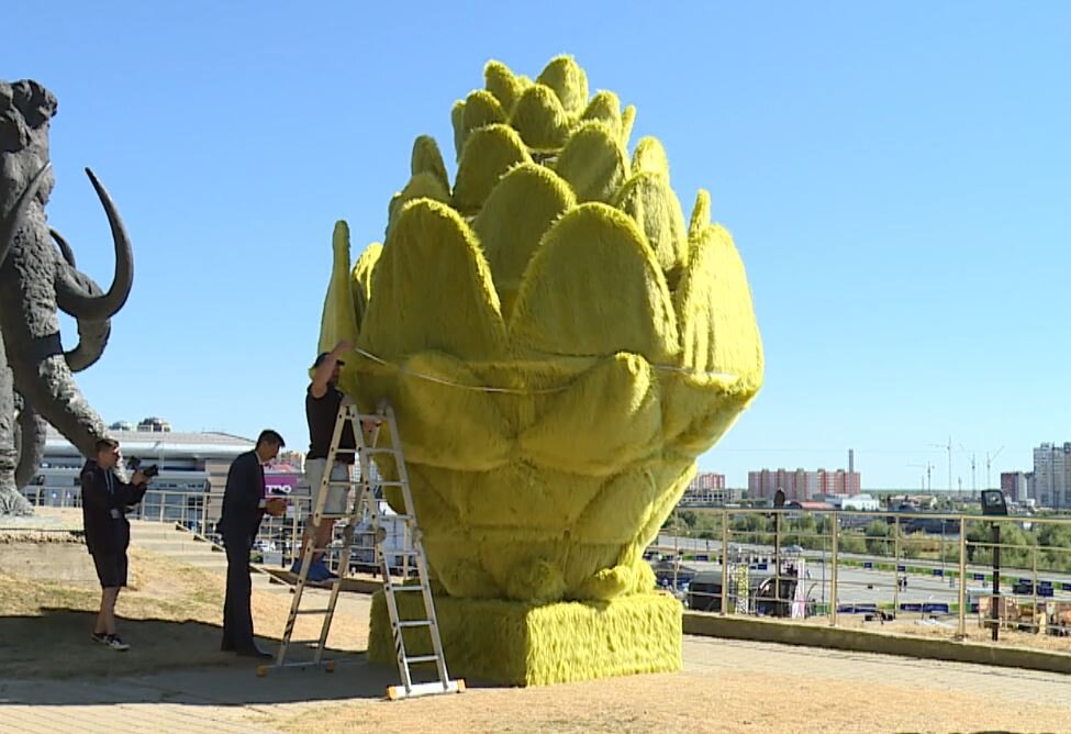 "Высота - более пяти метров. Диаметр - три с половиной метра. Это является рекордом России - первым в этой категории. То есть, если кто-то захочет побить этот рекорд, то ему нужно сделать меховую шишку больше по высоте и диаметру", - говорит Станислав Коненко, главный редактор, основатель Книги рекордов России.