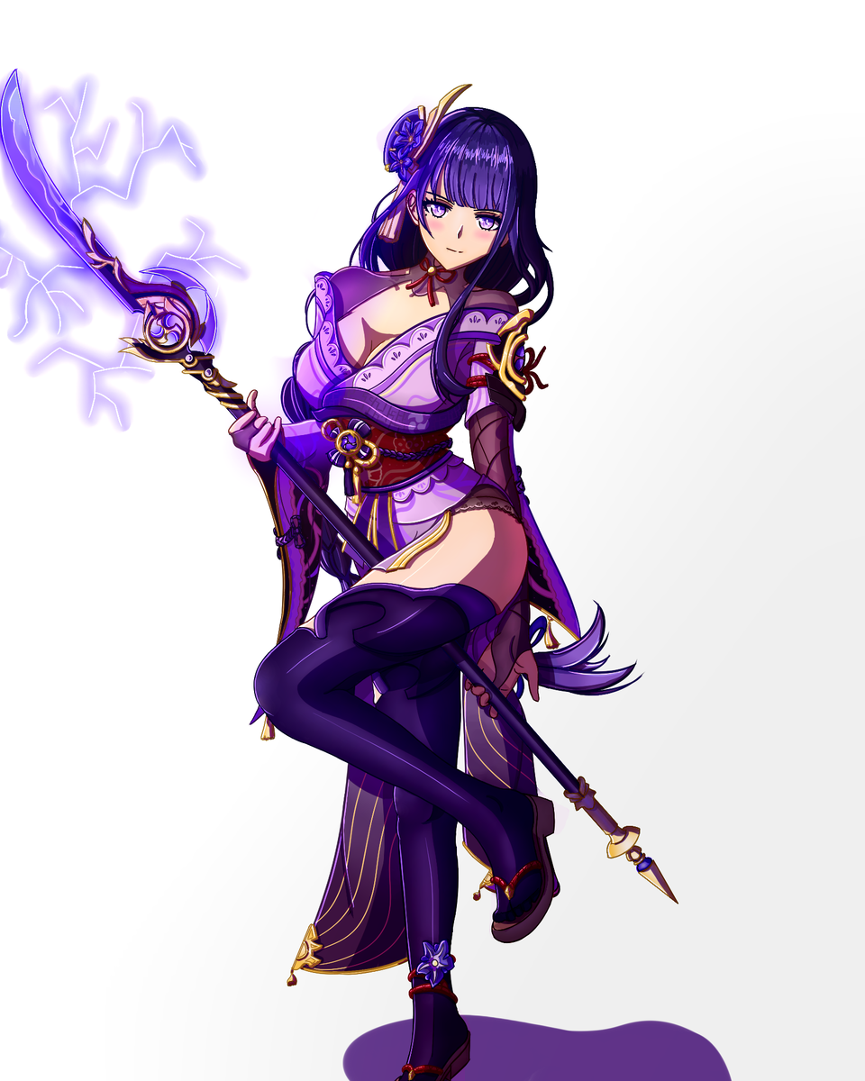 Фан арт по персонажу райден сегун из игры геншин импакт.