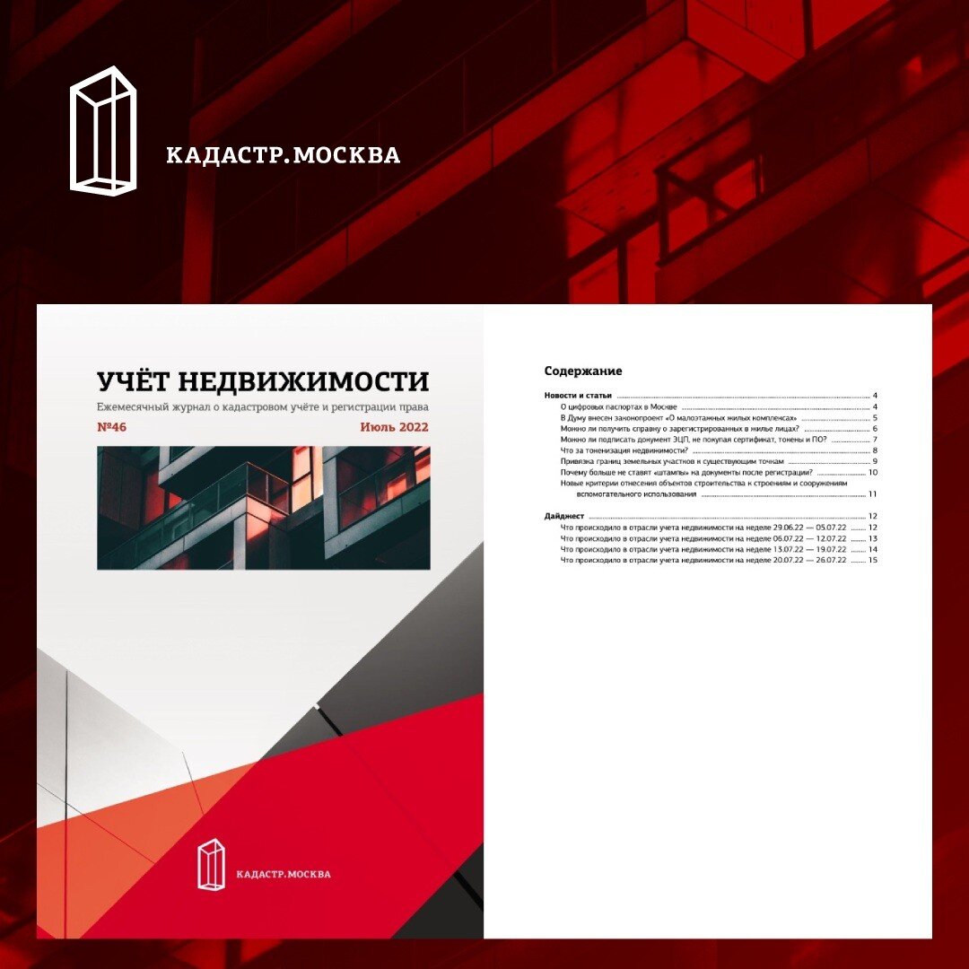 Ежемесячное издание о кадастровом учёте и регистрации права В течение месяца мы каждый будний день готовим и публикуем обзорные и аналитические материалы по учету недвижимости. В конце месяца подборка статей выпускается в формате глянцевого журнала. Бесплатно скачать номер в формате PDF вы можете по ссылке https://кадастр.москва/magazine Там же доступен архив предыдущих выпусков. Содержание номера: Ссылка на новость: https://кадастр.москва/news/865 #КадастрМосква #gkn77ru #кадастр #недвижимость #новости #журнал #кадастровый_учет #регистрация_прав ---------------------------------------------------------------------------------------- Будем рады вашим вопросам по кадастровому учёту и регистрации права, а также обоснованным замечаниям по опубликованным материалам. Комментарии, не относящиеся напрямую к теме статьи или канала, а также выражающие неуважение к собеседникам, могут быть удалены. Спасибо за ваше понимание. Больше информации о нас на сайте https://кадастр.москва Все наши статьи