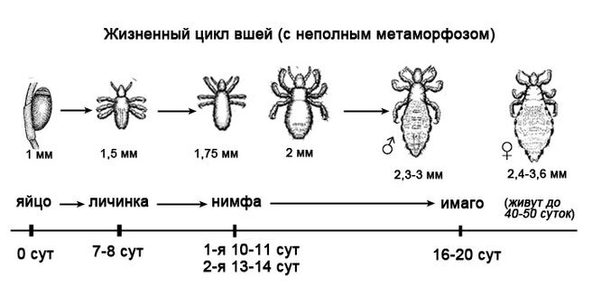Жизненный цикл вшей предполагает прохождение через три стадии развития: