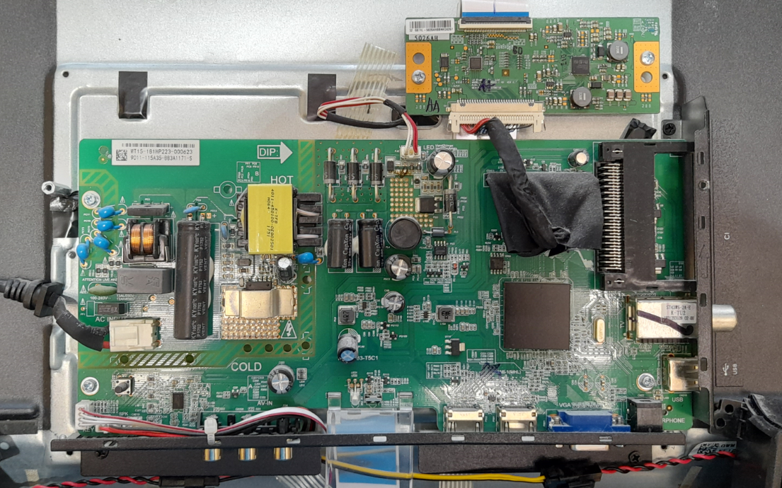 Всем здравствуйте! Сегодня у нас на ремонте телевизор Panasonic tx-32er250zz с диагнозом говорит, но не показывает. Ремонт можно сказать типовой. Но есть некоторые приколы :)) Телевизор привезли из другой области , после ремонта местных тамошних мастеров. Итак приступим. Посмотрим что у него внутри. И на что всё это похоже. Майн плата msd3463-t5c1 T-con 6870C-0442B При включении телевизора видны блики изображения и есть звук. Как нам сказали, что этот телевизор уже был в ремонте у местных мастеров, но через два дня после того как кончилась гарантия (1 мес) телевизор опять погас. При осмотре было видно что на майн msd3463-t5c1 доработка подсветки уже сделана. Сначала сделал замер напряжения на разъёме подсветки. В момент включения есть всплеск напряжения порядка 45 вольт и плавное падение. Ну тут само собой лезем в корыто. Открываем и видим вот такую картину. И поближе :) Прикольно, но очень не аккуратно. Поставили два диода от samsung, если честно, то такую практику в редких случаях