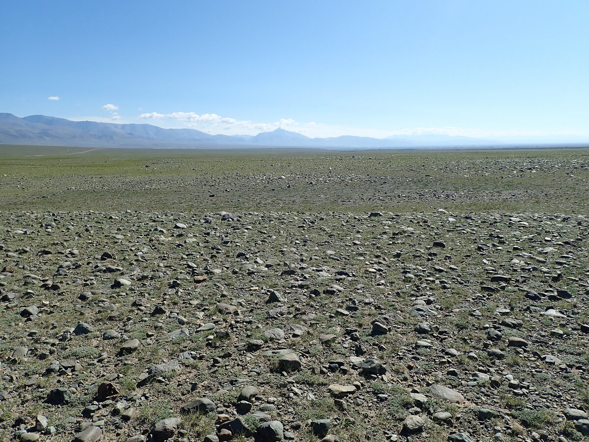 Чем ближе к границе с Монголией, тем меньше деревьев. Там где мы сейчас, их нет вообще. Ровная каменистая пустыня, называемая Чуйская степь. Утро началось с выхода на рассвет, потом завтрак, потом кормление местных сусликов потом погрузка в машины и переезд в сторону монгольской границы Чтобы попасть в Чуйскую степь, нам нужно преодолеть горный массив Сукор. Это несложно, дорога его просто обходит. Мы к нему сегодня еще вернемся. Пока что проезжаем мимо и недоезжая примерно 66 км до села Ташанта ( там пограничный пункт) сворачиваем с Чуйского тракта в каменистую пустыню. Довольно скоро и довольно неожиданно вместо грунтовой дороги с острыми камнями появляется асфальт который вскоре снова исчезает Эта чудо-дорога ведет в село Бельтир, расположенное у подножия горного массива Сукор в долине реки Чаган-Узун в месте слияния двух ее притоков - Чаган и Талдура.