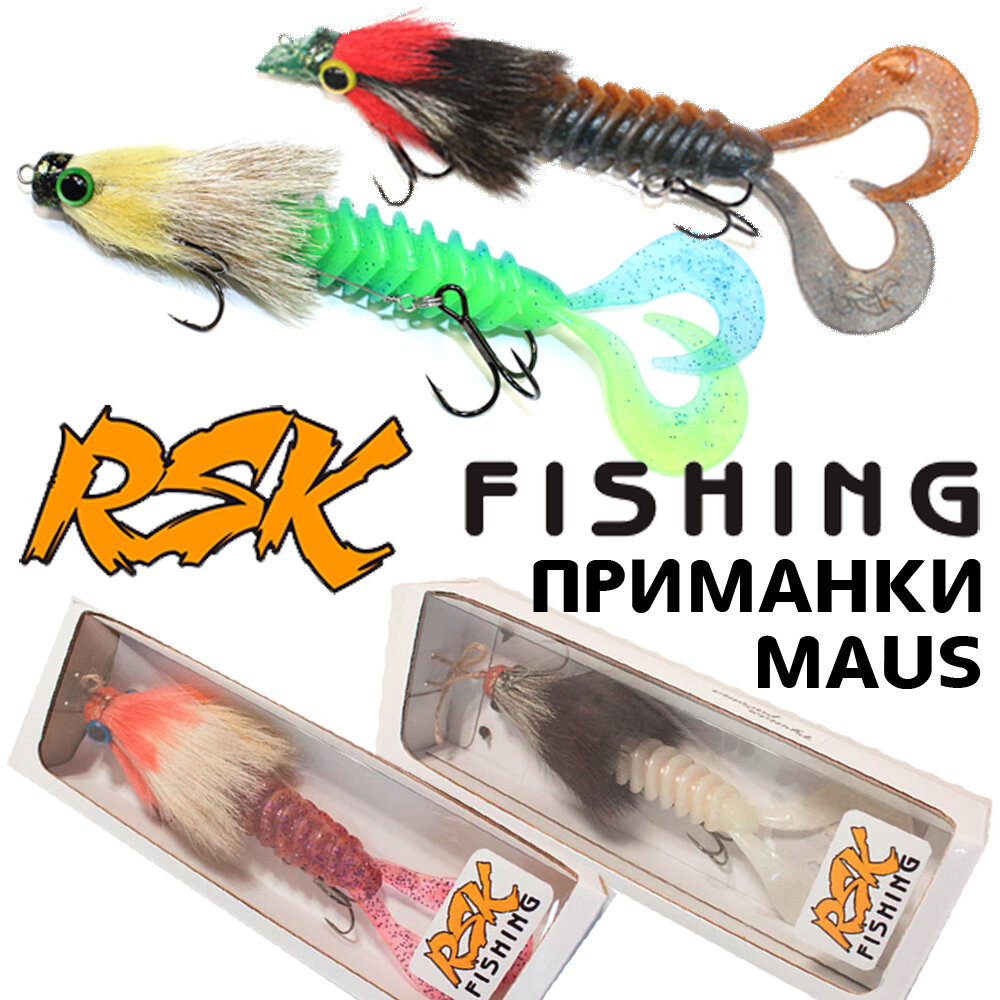 Новости Rybalkashop Уважаемые рыболовы, представляем вашему вниманию новинку - приманки Maus от компании RSK Fishing. Модели приманок этого бренда - результат многолетних наработок, доказанный высокими результатами! RSK Fishing - приманки для поимки настоящего трофея! Производство открыто с 2017г. Приманки производятся вручную. Разработчики бренда являются официальными спонсорами Всероссийских рыболовных соревнований. Мыши RSK Fishing Maus - приманки для трофейной рыбалки и трофейной рыбы! Приманка RSK Maus представляет из себя твистер с носиком ручной работы, сплетенным из натурального волоса козы. Силиконовое тело довольно долговечно и имеет оребренную форму, но при необходимости может быть без труда заменено. Эта приманка - настоящий магнит для крупной рыбы. На нее охотно клюет трофейная щука и некоторые другие хищники. Приманка RSK Fishing Maus относится к классу бактейлов. Она легка в применении и отлично забрасывается. При помощи бактейла можно за короткий промежуток времени обло