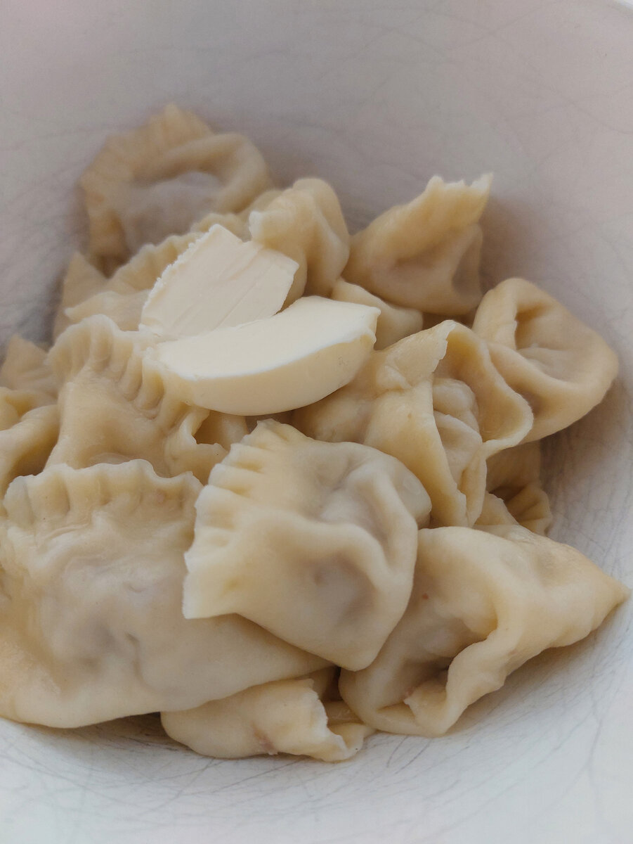 Сегодня очень захотелось пельменей. Но так как у нас они не продаются, то пришлось лепить самой. Получились вкусные, с бульончиком внутри. Мой главный дегустатор - мой сын - оценил, съев порцию и на обед и на ужин :) ИНГРЕДИЕНТЫ: фарш - 350 гр.; лук - 1 шт.; соль - по вкусу; мука - 1,5 стакана; яйцо - 1 шт. РЕЦЕПТ: 1 шаг: замесим тесто. Если тесто получилось слишком вязкое, то добавить ещё муки. Если наоборот, слишком сухое, то каплю воды. Тесто не должно "липнуть" к рукам, должно быть мягкое и податливое. Шаг 2: убираем тесто на расстойку минут на 30. Чтобы оно не посохло, надо либо пищевой плёнкой накрыть, либо, как это сделала я, убрать в контейнер и накрыть крышкой. Шаг 3: приступаем к приготовлению начинки. Нарежем мелко-мелко лук. Смешаем с фаршем и посолим по вкусу. Шаг 4: лепим пельмени. Раскатываем тесто - вырезаем кружок - кладём на него фарш. Шаг 5: край смазываем водой и лепим пельмешки. Сначала "полумесяц". Шаг 6: а теперь соединяем края. Шаг 7: отвариваем 10 минут в кип