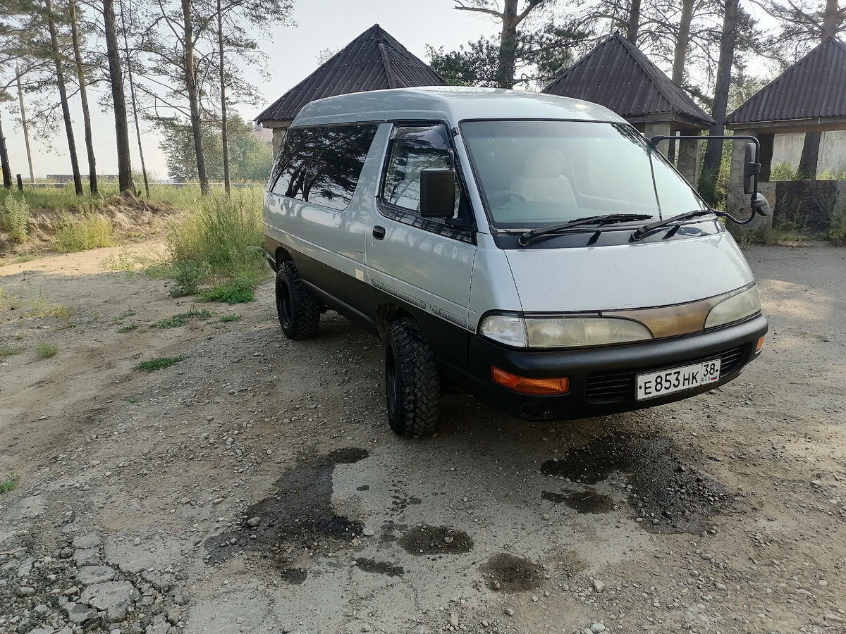 Спустя три года у меня не гасло желание, именно 4вд, именно микроавтобус... В общем начались поиски, ну и как в прошлый раз пересмотрел кучу всего, тут нашёл займа, приезжаю, епа мать..... Хлам хламом, шпатли на борте около 20мм, кошмар, ценник 400т.р, думаю да пошёл ты на...напел мне по телефону. Еду расстроенный в сторону дома, и уть вылазит лит эйс, 95 год, бензин, свап ну и фиг с ним, дизеля серии С- полный отстой, греются, не едут, аппаратура слабенькая, короче беда. И вижу этого красавца, на грязевой резине, один владелец с 2004 года, причём люди жили рядом со мной совсем, короче звоню - едем. Приехали на дачу где он стоял, эх я просто понял что всё, он мой.....стоял полгода, не запускается, свечи залилили, пытались отогреть, в итоге спалили страртер, но отступать я не собирался, в итоге так как человек жил и работал рядом со мной + общие знакомые, верю ему что машина живая, утаскиваем в сервис на тросу, и всё... Там меняем стартер меняем свечи - эврика машина запустилась, но после свапа были недочёты по электрике, и не работала печка, но все равно, машина - кайф. Ну и полетели будни счастливого бусовода, первым делом - электрика, очень хороший и умный человек исправил мне всё полностью за 6т.р. И всё, проблем никаких, понеслась, на улице месяц Январь, снега куча, и погнали, гонял и открывался везде где хотел, балдел одним словом, но у этих машин есть один огромный минус - а это низковисящая раздатка, это просто кошмар, ближе к весне когда снег стал плотным, ехали с детьми и другом по полю, машина просто резко останавливается, и смотрю, ха - прикол, повисла на раздатка, ё моё, откапать собственными силами нам не удалось 🚐, звоним корефану на патриоте, тот не напрягаясь вытащил на летней резине, усмехнулся и поехал дальше.... Эх эх эх, низкая раздатка, меня подводил ещё несколько раз, ну и решение пришло ко мне уже летом, полез на форумы, и понял что мне немного можно облегчить жизнь, и приподнять заднюю часть машины, ставим пружины прадо 90 - цена 1000р за пару, и ставим амортизаторы импус 10 кузов, 1400 за пару, и эврика, машина значительно приподнялась, реально стало проще проезжать, там где застревал, конечно нужно к этому подходить с умом, но все равно, стало гораздо интереснее :) эх чёт устал писать, скорее всего чуть позже продолжу, а вы подписывайтесь, со мной будет интересно.