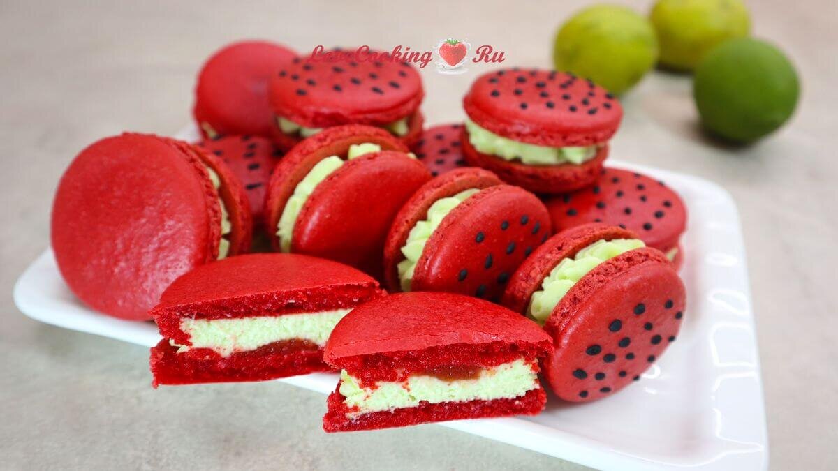 Когда, как не в летний сезон поэкспериментировать с фруктово-ягодными начинками. И макарон отлично для этого подходят, так как их вкус зачастую определяется именно начинкой. Сначала были сомнения по поводу арбузного вкуса, но зря, получилось отлично! Итак, сегодняшний десерт - это макарон на швейцарской меренге, взбитый лаймовый ганаш и арбузная начинка. Сладость и свежесть арбуза отлично сочетаются с кислинкой лайма. С ганашем экспериментировала, к моему великому счастью, удачно:-) Этот лаймовый ганаш хорошо взбивается, отлично держит форму, подходит и для начинки, и для украшения, и для выравнивания тортов. В отличие от классического взбитого ганаша на белом шоколаде он не приторный, с очень приятным вкусом и ароматом. КБЖУ на 100 г примерно: 409/8/21/47. Видеорецепт можете посмотреть здесь: Ингредиенты Примерно 38 шт. диаметром 4 см: Швейцарская меренга: 90 г яичного белка 85 г сахара Макаронаж: меренга 105 г миндальной муки 95 г сахарной пудры Лаймовый ганаш: 2 г желатина (200