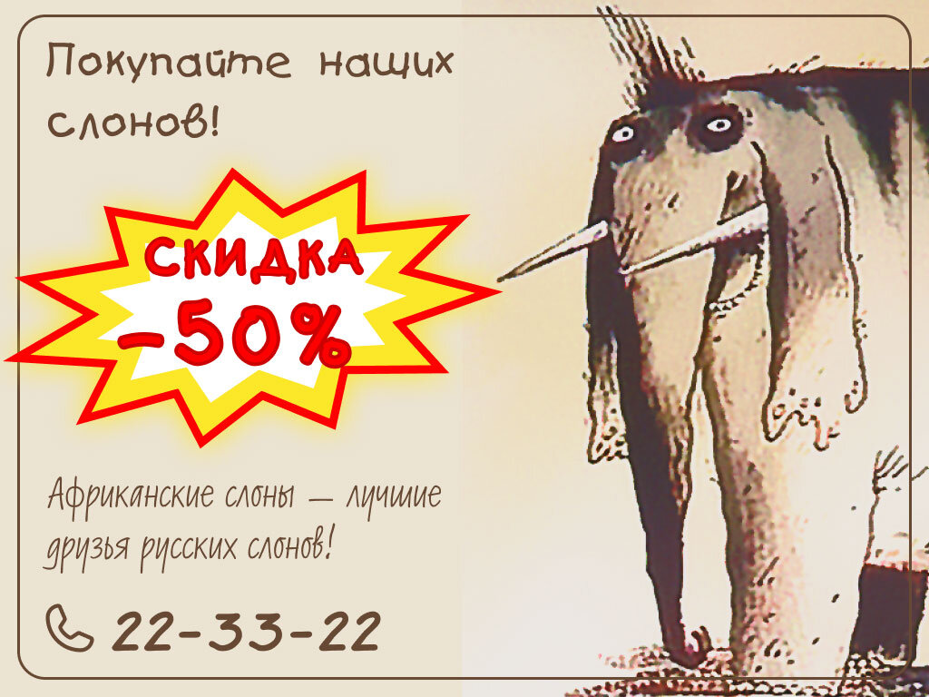 Вот, скажем, текст: «скидка –50%!!!» (И всегда меня смущало… Если, что такое скидка в 50% мне понятно – это удешевление на половину, то что такое, чисто математически, скидка в минус 50%?.. Удорожание?) Понятно же, что на нём надо максимально фиксировать внимание. А значит его нужно сделать ярче, крупнее, «центрее», если можно так сказать. И плевать на формальные правила! Если продаёт, если внимание привлекает, то так и правильно. Такая вот типографика...