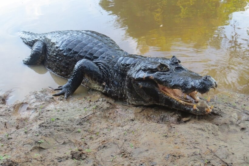 Тропические леса Амазонки давно сыскали славу самых опасных мест, где водится огромное количество странных и удивительных существ, встреча с которыми не сулит ничего хорошего. Впрочем, угроза таится не только в лесу. Воды реки Амазонки ничуть не менее страшны. Только посмотри, какие монстры там обитают — миллион раз подумаешь, прежде чем отправиться туда! 1. Черный кайман Можно сказать, что это аллигатор на стероидах, их мышцы куда крупнее, а вырастать они могут до шести метров в длину. Это, несомненно, высшие хищники реки Амазонки, местные короли, которые без разбора едят всех, кто попадается им на пути. 2. Анаконда Еще одним гигантским чудовищем Амазонки является известная всем анаконда, самая крупная змея в мире. Вес самки анаконды может достигать 250 килограммов, и это при 9-метровой длине и диаметре в 30 сантиметров. Эти хищники предпочитают мелководья, так что чаще всего их можно встретить не в самой реке, а в ее ответвлениях. 3. Арапаима Огромный хищник арапаима экипирован бр