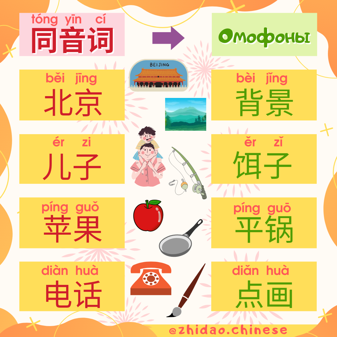 Сегодня предлагаем вам еще одну подборку омофонов (同音词 tóngyīncí)! 📣 В китайском языке множество слов, состоящих из одинаковых звуков, но если произнести их разными тонами, то значение может кардинально поменяться, а иногда два слова могут произноситься абсолютно одинаково, но записываться разными иероглифами и иметь разные значения 🙊 🔊 Открывайте видео и включайте звук, чтобы услышать, как произносится каждое слово! 🇨🇳 北京 běijīng Пекин 🖼️ 背景 bèijǐng фон, предпосылка; окружение, среда, обстановка 👦 儿子 érzi сын 🎣 饵子 ěrzǐ приманка, наживка 🍎и苹果 píngguǒ яблоко 🍳т平锅 píngguō сковорода ☎️ 电话 diànhuà телефон 🖌️ 点画 diǎnhuà в живописи: писать/рисовать штрихами/точками - это манера в каллиграфии и при изображении насекомых и растений 📝 Ссылка на карточки Quizlet для изучения новых слов: https://quizlet.com/_bt3nta?x=1qqt&i=2r5snr 📚 Хотите, чтобы Вы или Ваш ребенок заговорили на китайском? Напишите нам для записи на групповые / индивидуальные занятия! 🎓 #china #chines