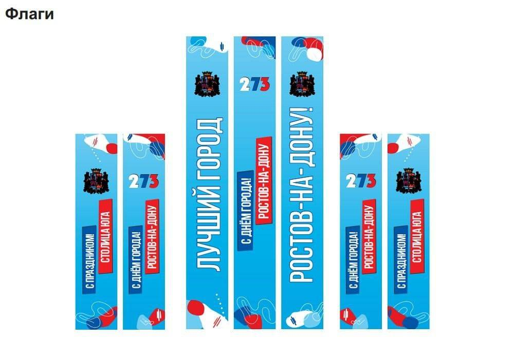 Именинника «на голубом фоне» будут называть «столицей Юга» и «лучшим городом». В Ростове разработали концепцию и брендбук комплексного оформления территории донской столицы на День города. Об этом сообщил глава администрации Алексей Логвиненко в своем Telegram. Базовыми цветами логотипа праздника в этом году стали белый, синий, красный, а цветом фона избран голубой. Брендбук содержит подробное описание использования каждого фирменного элемента на различных носителях, сообщил градоначальник. По его словам, при оформлении города к 273-летию будет использовано порядка 250 флагов, 530 панно и две новые световые композиции. Судя по опубликованным образцам, Ростов будет именоваться на флагах «столицей Юга» и «лучшим городом». Кроме того, на здании «Атомкотломаша» будет установлено крупноформатное панно площадью около 3 тыс. кв. метров с изображением знаковых символов города. Это будет логотип 273-летия Ростова, а также главные достопримечательности донской столицы: собор Рождества Пресвятой
