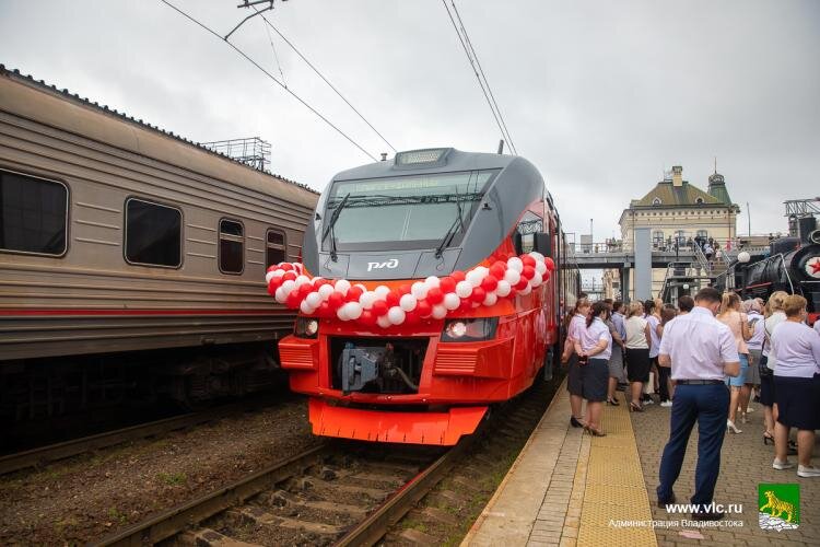 Новый электропоезд повез своих первых пассажиров в Спасск-Дальний Современное транспортное средство с шестью вагонами будет направляться по маршрутам Владивосток – Спасск-Дальний, Владивосток-Тихоокеанская. В торжественном запуске электропоезда принял участие глава Владивостока Константин Шестаков, сообщает РИА VladNews со ссылкой на администрацию Владивостока. После открытия новая электричка практически сразу собрала своих первых пассажиров в Спасск-Дальний. Глава Владивостока отметил ее комфортабельность, последовав по новым вагонам в рамках экскурсии от специалистов РЖД. Сотрудники железной дороги рассказали про достоинства нового электропоезда, в том числе про оснащение системой микроклимата, автоматически обеззараживающей воздух, usb-порты, расположенные под сидениями. Одним из главных преимуществ является то, что головные вагоны оснащены специальными механизмами для посадки колясочников, что облегчит жизнь людям с ограниченными возможностями. По словам специалистов, электропоезд